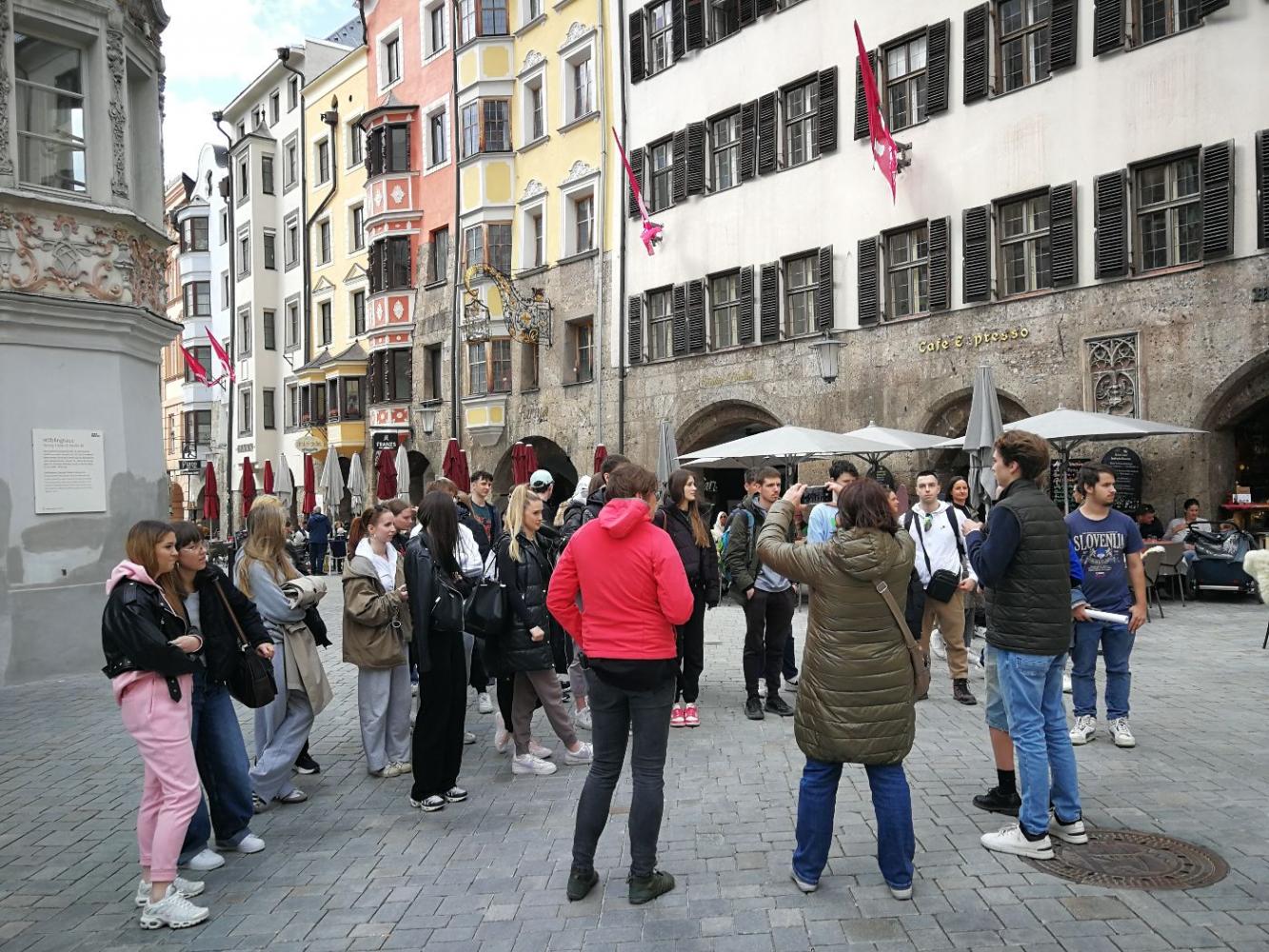 Der erste gemeinsame Nachmittag stand ganz im Zeichen der Stadt Innsbruck. Wir führten unsere Gäste durch die Stadt und präsentierten ihnen wichtige Sehenswürdigkeiten wie die Markthalle, die Hofkirche, den Hofgarten und natürlich das Goldene Dachl. Die gesamte Stadtführung fand auf Englisch statt – eine tolle Möglichkeit für uns alle, unsere Sprachkenntnisse anzuwenden und gleichzeitig mehr über die Geschichte unserer Stadt zu erzählen. Die Atmosphäre war offen, interessiert und sehr herzlich – es machte einfach Spaß, Innsbruck durch die Augen unserer Gäste neu zu entdecken.