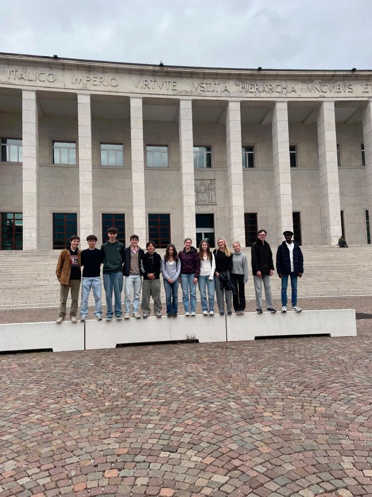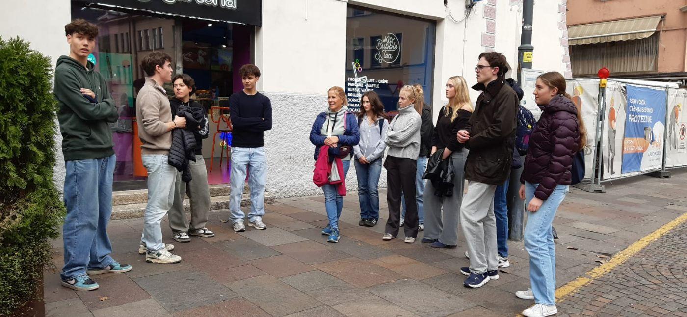 Gleich zu Beginn stand eine Stadtführung durch Schüler des humanistischen Gymnasiums auf dem Programm. Sie begleiteten unsere Schülerinnen und Schüler zu interessanten Plätzen auf beiden Seiten der Talferbrücke. Dabei wurde schnell klar, wie facettenreich das Zusammenleben der deutschen und italienischen Sprachgruppen ist – geprägt von gegenseitigem Respekt, aber auch von geschichtlichen Herausforderungen, die bis heute spürbar sind.
