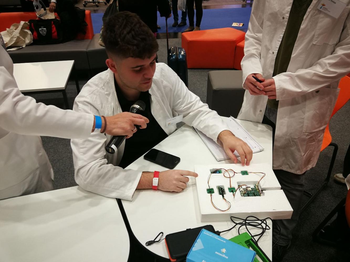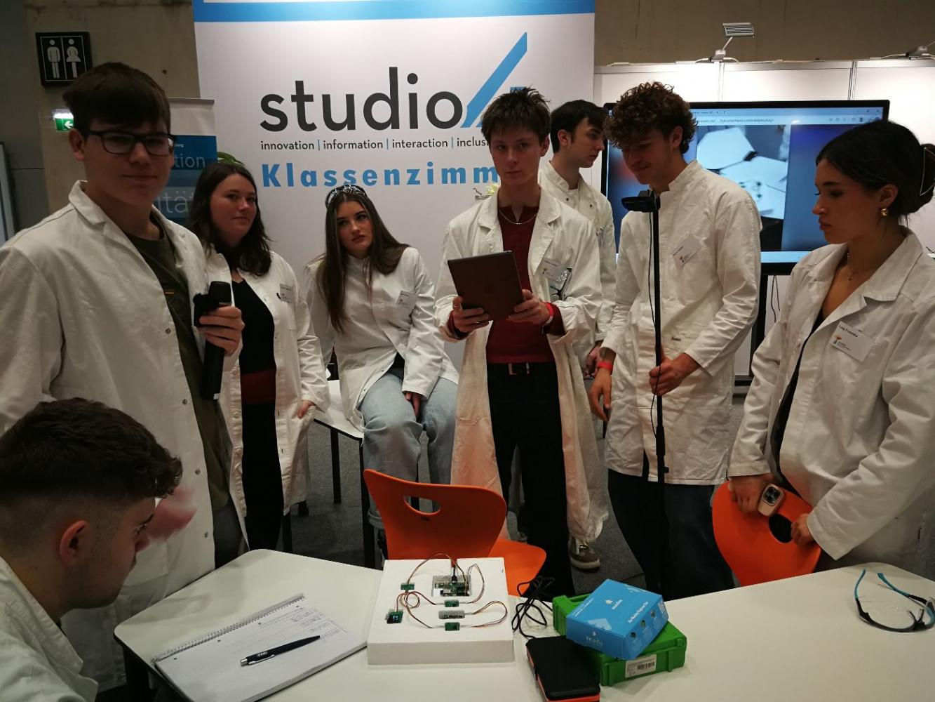 Das Ziel dieses Projekts war es, die Luftqualität in verschiedenen Räumen und zu unterschiedlichen Zeiten zu messen, um zu untersuchen, welche Faktoren die Luftqualität im Klassenraum beeinflussen und wie sich die allgemeine Luftqualität im Laufe eines Schultages verändert. Dazu wurde nicht nur am Franziskanergymnasium in Hall geforscht, sondern auch am Franziskanergymnasium in Bozen, wo die Schülerinnen und Schüler der 7a-Klasse den Unterricht begleiteten. Über 20 Stunden lang wurde die senseBox, welche die gemessenen Werte via Display anzeigt, verwendet, um Daten in verschiedenen Schulräumen zu sammeln, die in einer Excel-Tabelle zusammengetragen und grafisch dargestellt wurden. Schlussendlich wurden die Ergebnisse von den Schülerinnen und Schülern auf der Bildungsmesse Interpädagogica in Wien präsentiert. Der letzte Ort der Messungen war die Interpädagogica selbst, auf welcher die Schülerinnen und Schüler der 7b-Klasse sogar während der Präsentation der bereits gesammelten Messwerte die senseBox auspackten, um die Luftqualität vor Ort zu untersuchen.